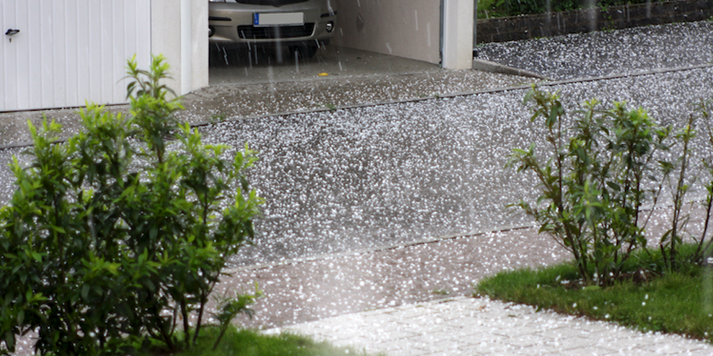 Hagel över bilparkeringen.