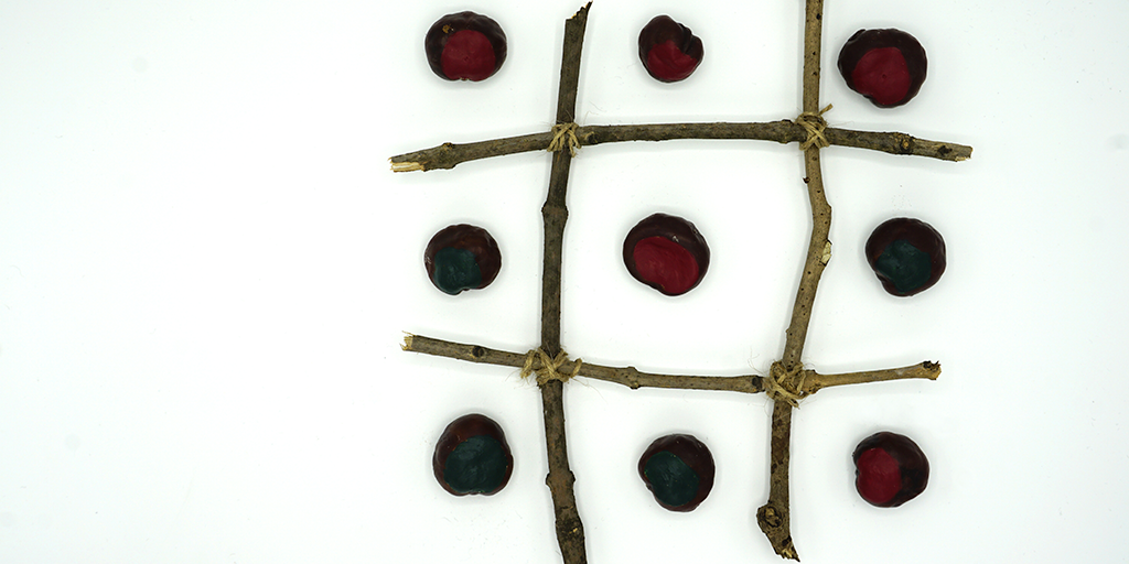 Varje spelare lägger en sten i taget och den av er som först får tre av sina stenar i rad, antingen diagonalt, horisontellt eller vertikalt, vinner.