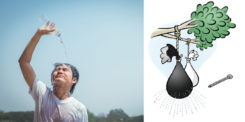 Gör så här: Vira den blöta tidningen runt flaskan. Lägg flaskan med tidningen i solen. När tidningen är torr, ta bort tidningen och häll upp ett glas vatten. Voilá – det är kallare!