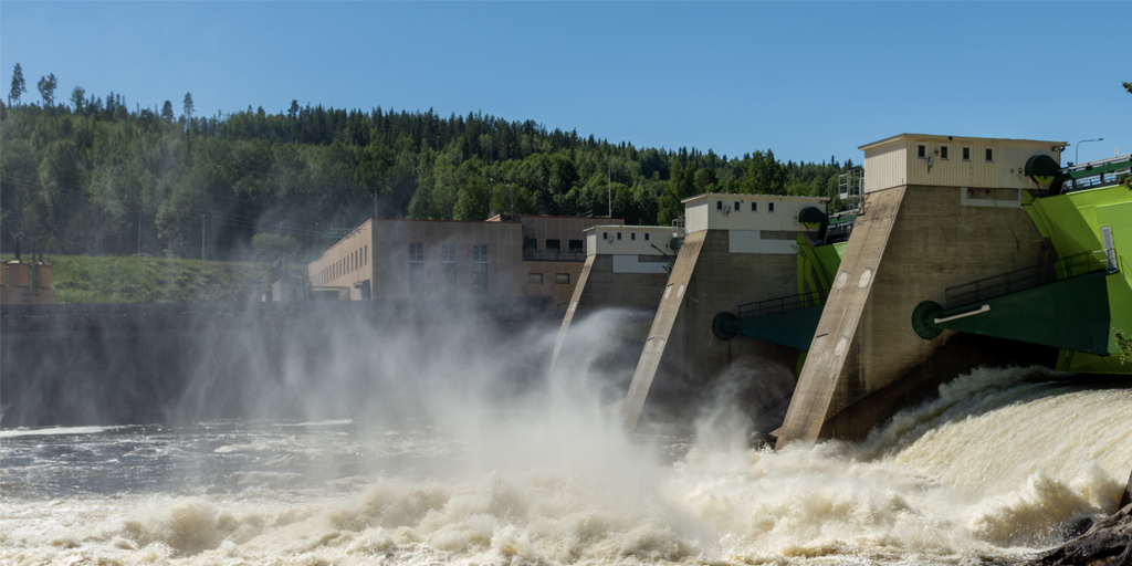 I vattenkraftverk utnyttjar man vattnet som rinner igenom floder och älvar. Ju högre nivå vattnet faller ned ifrån, desto mer effekt. Därför lagras vattnet ofta i en damm ovanför vattenkraftverket. När man släpper ut vattnet forsar det igenom en turbin, som i sin tur driver en generator som producerar el.